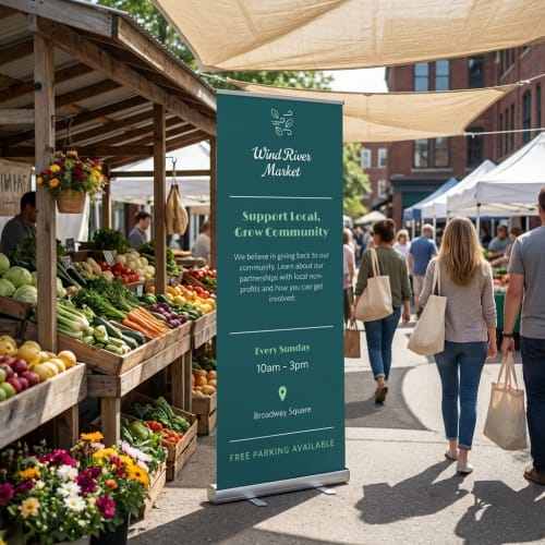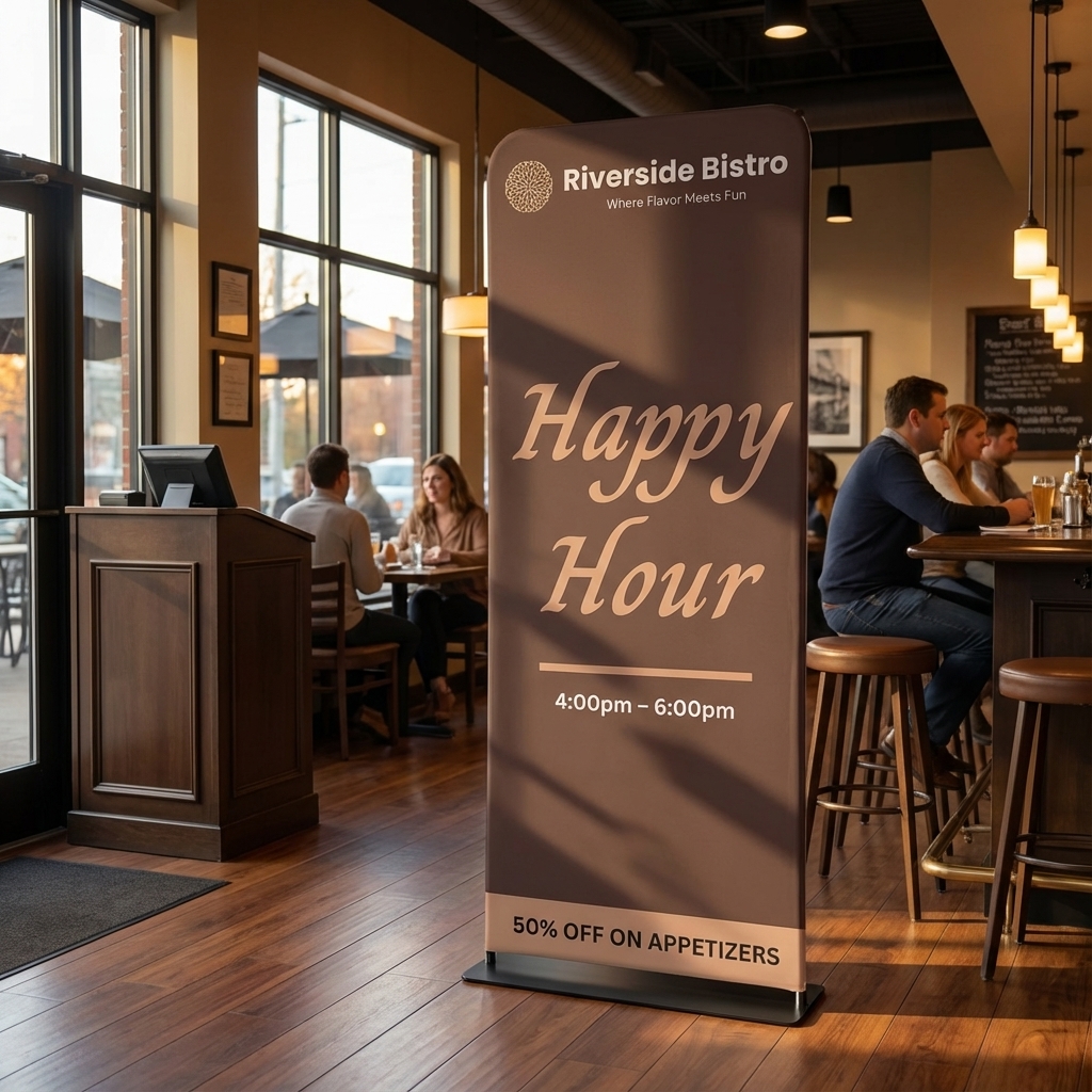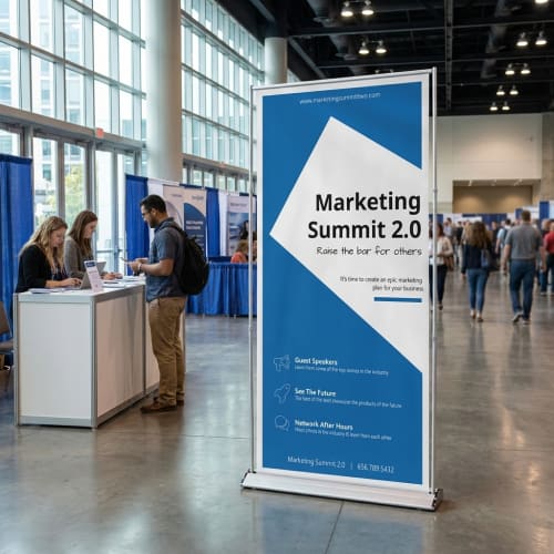 Currently, our banners are available in industry-standard sizes specific to each type, including fabric, tension fabric, retractable, and table top options. While fully custom dimensions are not offered, our range covers most display needs from compact desktops to large event backdrops.