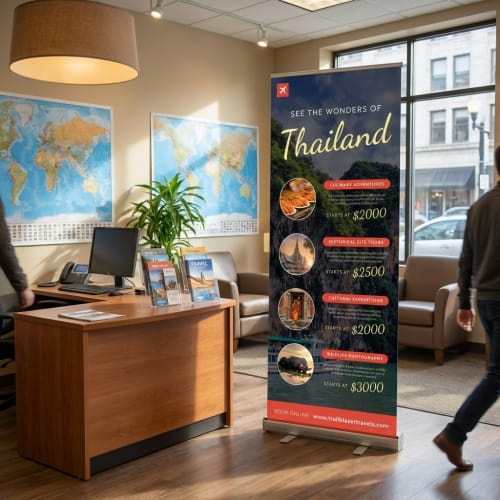 Our banners are printed on a premium indoor vinyl that offers a matte finish to reduce glare and resist curling. This material delivers sharp details and rich colors, making it ideal for repeat use in environments like lobbies, conferences, or promotional events.