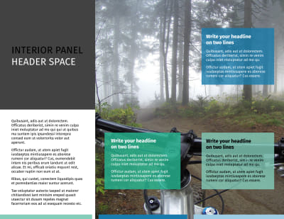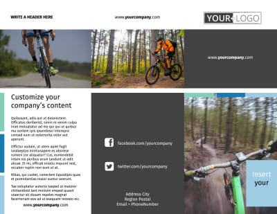 Keep cyclists in your area well informed of the trails, races, and other cycling events that they can participate in with biking & cycling brochures made with our customizable templates and online editor. Choose a template design you like, select a size and fold type, and modify the color theme, images, and other design elements to create a fun, exciting brochure that will get cyclists hopping on their bikes and putting their feet to the pedals.