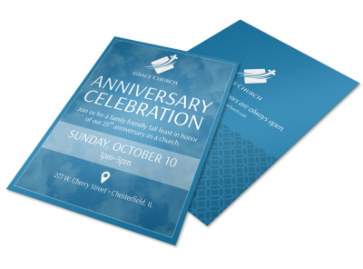 It’s birthday time for your church, so let the community know it with a flyer to celebrate this momentous occasion. Include the details of your celebration, events you have planned, and an overview of your organization’s milestones in the previous year. Add color photos, graphics and more, then print from your own location. Get started today!
