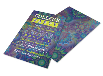 Let your dorm mates know about a big upcoming party with a flyer you can post on bulletin boards or distribute around campus. Include all the important deets, such as the date and time of the event, along with any other info that partiers may need to know. Put down the books and start designing your college party flyer now.
