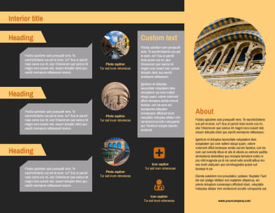 You know how to design beautiful things, now show off your chops with creative architecture and design brochures customized using our online editor and templates. Each template is completely customizable with your photos, graphics, and text, so you can easily show off previous design projects and give a rundown of your training, accreditation and more. Get started today and get a print-ready brochure design in place in minutes.