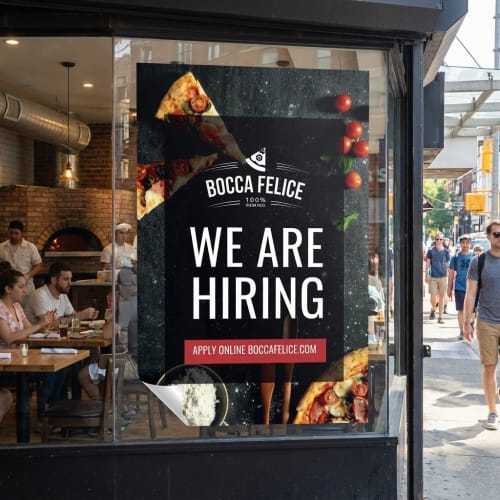 Our decals are intended for exterior application, meaning they adhere to the outside surface of windows, doors, and other flat glass areas. This placement ensures full visibility and lasting adhesion on storefronts, vehicles, and other surfaces.
