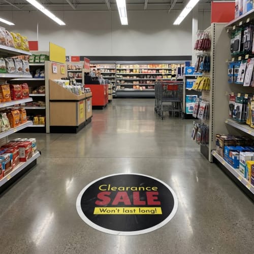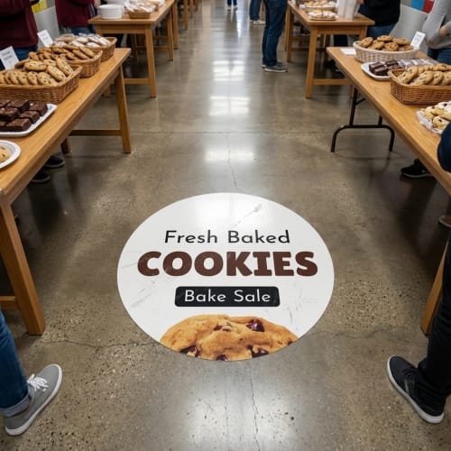 Floor decals are custom-printed vinyl graphics designed for application on floors, ideal for promotions, branding, safety, and directions. Printed on durable, slip-resistant vinyl, they conform well to flat indoor surfaces and offer easy application and clean removal. With a range of sizes and order quantities, they deliver reliable performance across retail, office, and event settings-giving you a confident, professional result every time.