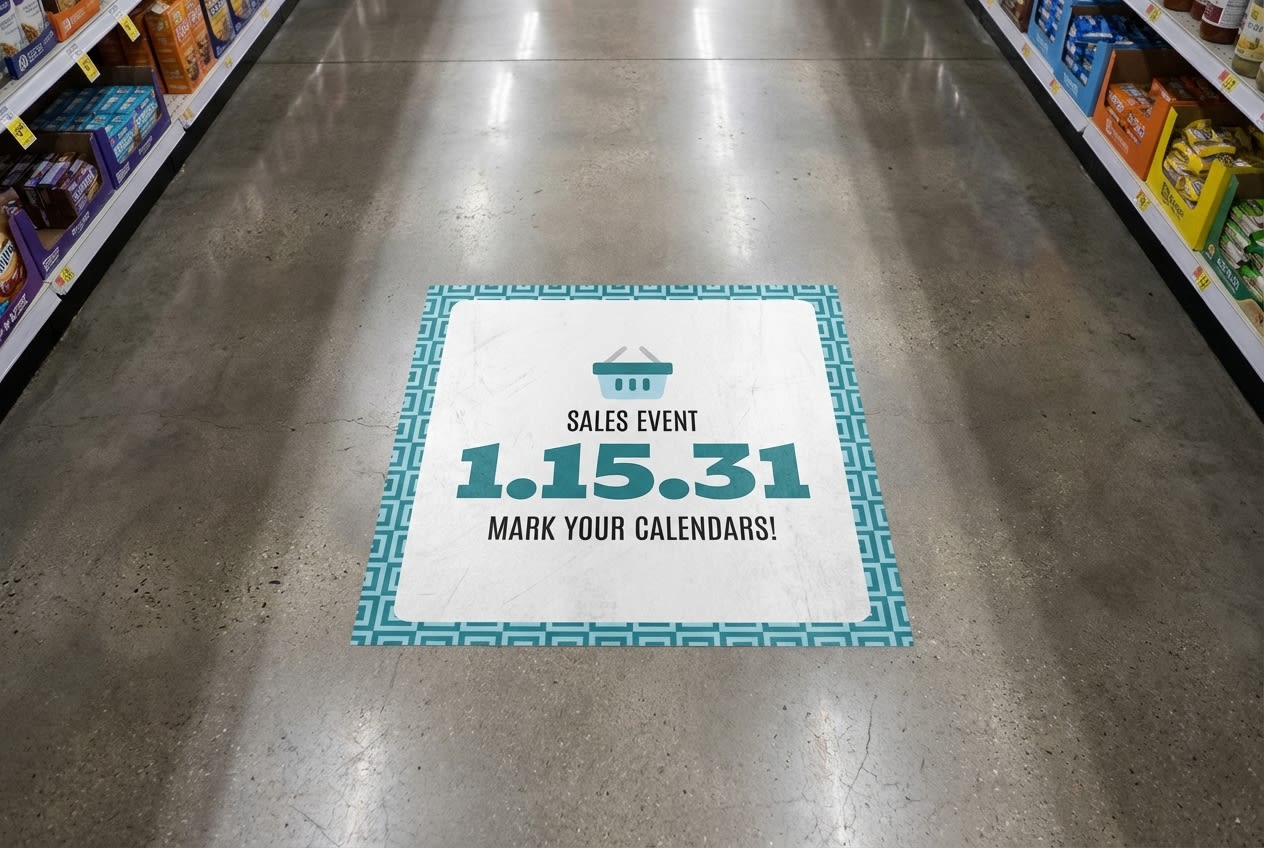 You can create your custom floor decal right in our editor-no design experience needed. Start with one of our templates or upload your own artwork, then move seamlessly into production. We'll print your decals with precision and ship them directly to your door for a simple, efficient experience you can rely on.
