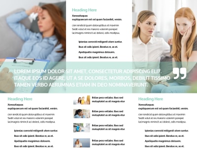 Provide hope to the hopeless with depression & anxiety counseling brochures detailing how you can help. Give patients insight into your training and qualifications, expertise, treatment modes, and more, and then add photos or images to drive home your message. Create an informative brochure in minutes today using our online editor and your choice of template.