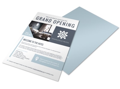 Make sure your hotel's grand opening is one to remember by advertising it with this flyer. Ideal for hotels, motels, and B&B's, this flyer has lots of room to upload photos of your rooms, amenities, pool and more. Get busy on your custom design today!