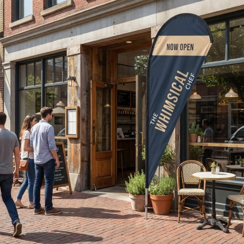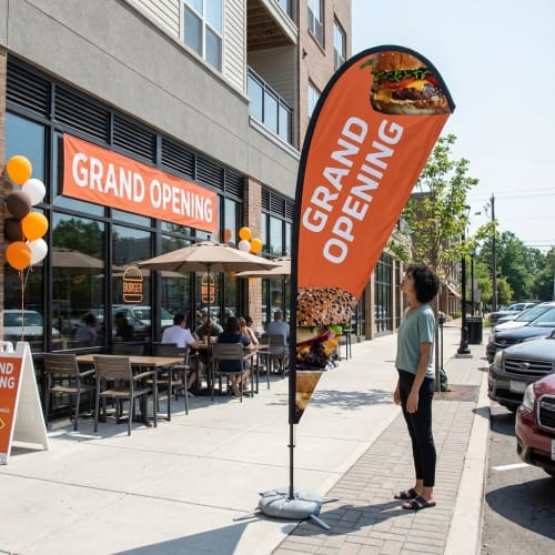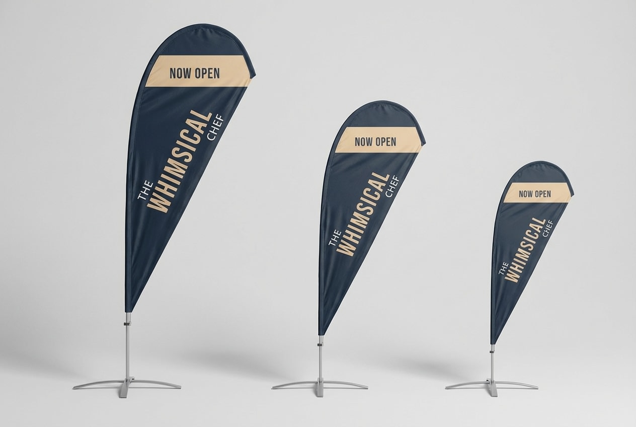Teardrop Flags are tall, curved banners designed to attract attention in both indoor and outdoor environments. With multiple heights and a premium material that resists fading and wear, these flags are built for performance. They’re ideal for businesses looking to boost visibility at storefronts, trade shows, grand openings, or outdoor events. Every detail-from the precision-stitched edges to the bold color output-is engineered for durability and impact.
