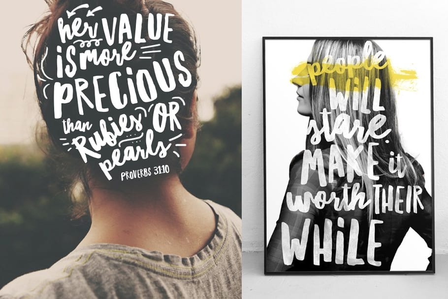 Script and photographs can create a powerful image, with only two elements. For this example, the hand-drawn typography is meaningfully placed on the back of the head to symbolize that it's on the person s mind. In the second example, the lettering is perfectly encapsulated in the silhouette of a female figure, which is just as clear and impactful. Typography filling in the shape of a photograph forms a meaningful visual.