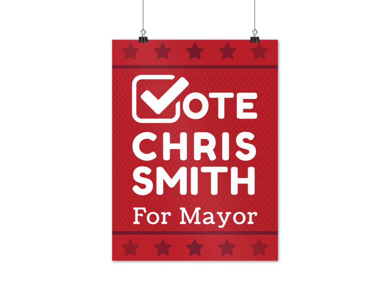 For this election poster, the V on the word vote also represents an old-school ballot where a voter marked a box with a check. Even straightforward, simple design elements, will make your poster stand out from the dozens of others out there.