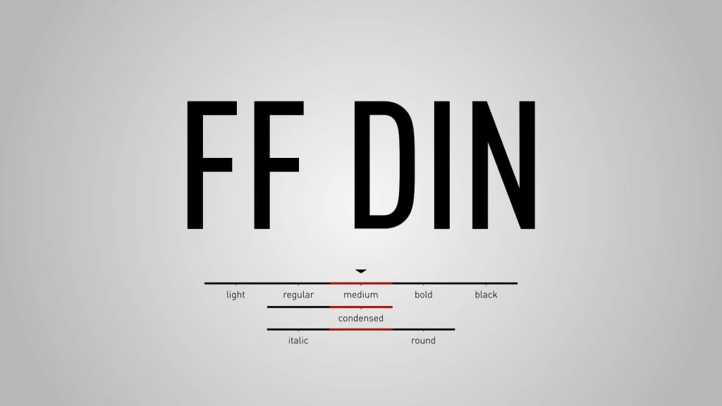 Image via MyFonts FF DIN by Albert Jan-Pool and FontFont