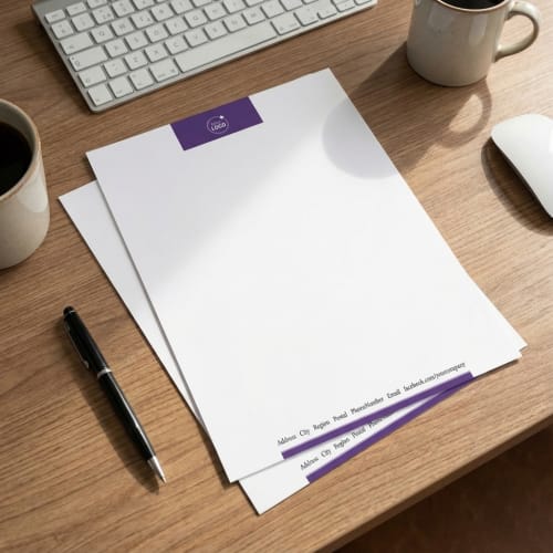 Letterhead is a customized business stationery product designed to help companies present a polished, professional image in every printed communication. Sized to a standard 8.5" by 11" format, it works seamlessly with most home and office printers. Printed on a clean, matte stock with an uncoated finish, it’s suitable for handwritten notes, stamps, and high-volume printing. With flexible quantity options and professional-grade production, our letterheads offer a reliable solution for branded correspondence, proposals, contracts, and more.