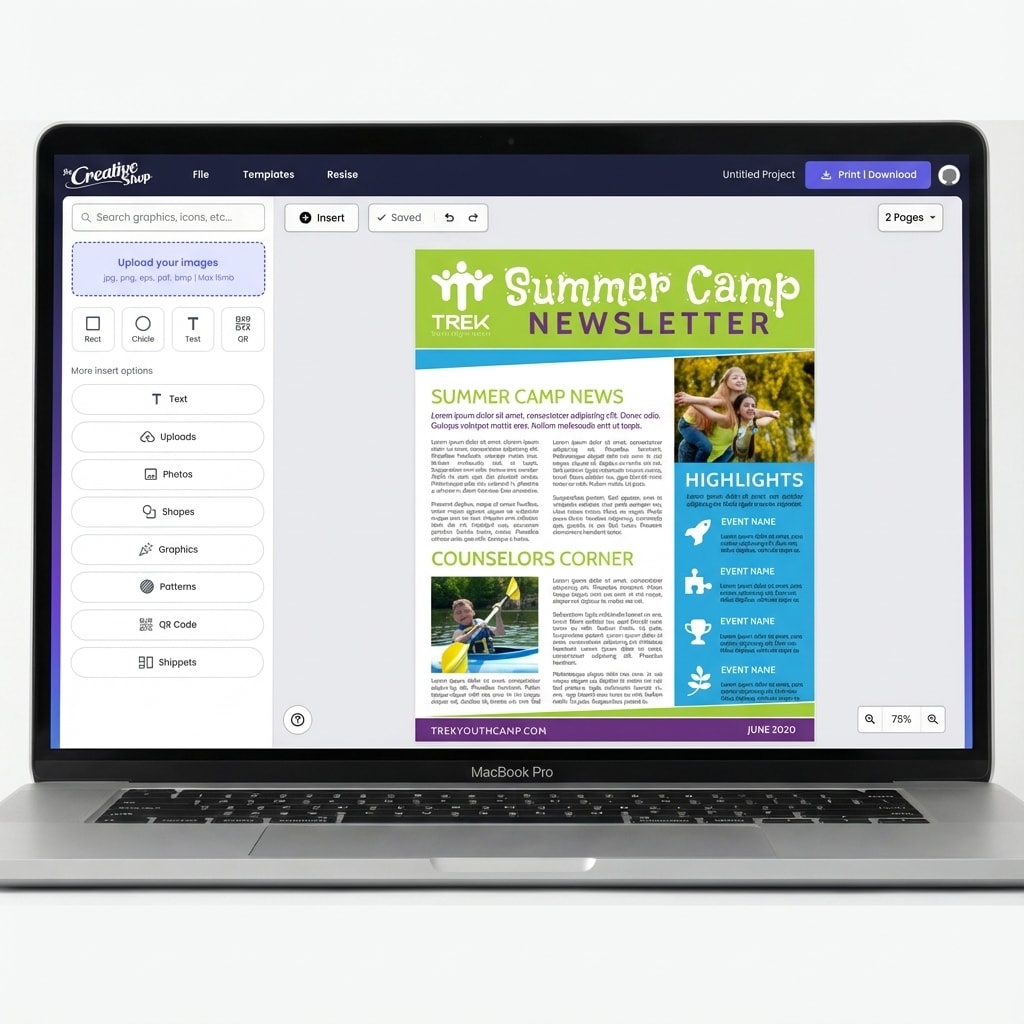 Everything you need to create a custom newsletter is right here. Use our design editor to personalize one of thousands of pre-designed templates, or upload a complete file. From layout to print to doorstep delivery, our platform makes it easy to move from concept to reality. With fast shipping, pro-grade finishes, and intuitive tools, you can design, print, and share your message with confidence and efficiency.