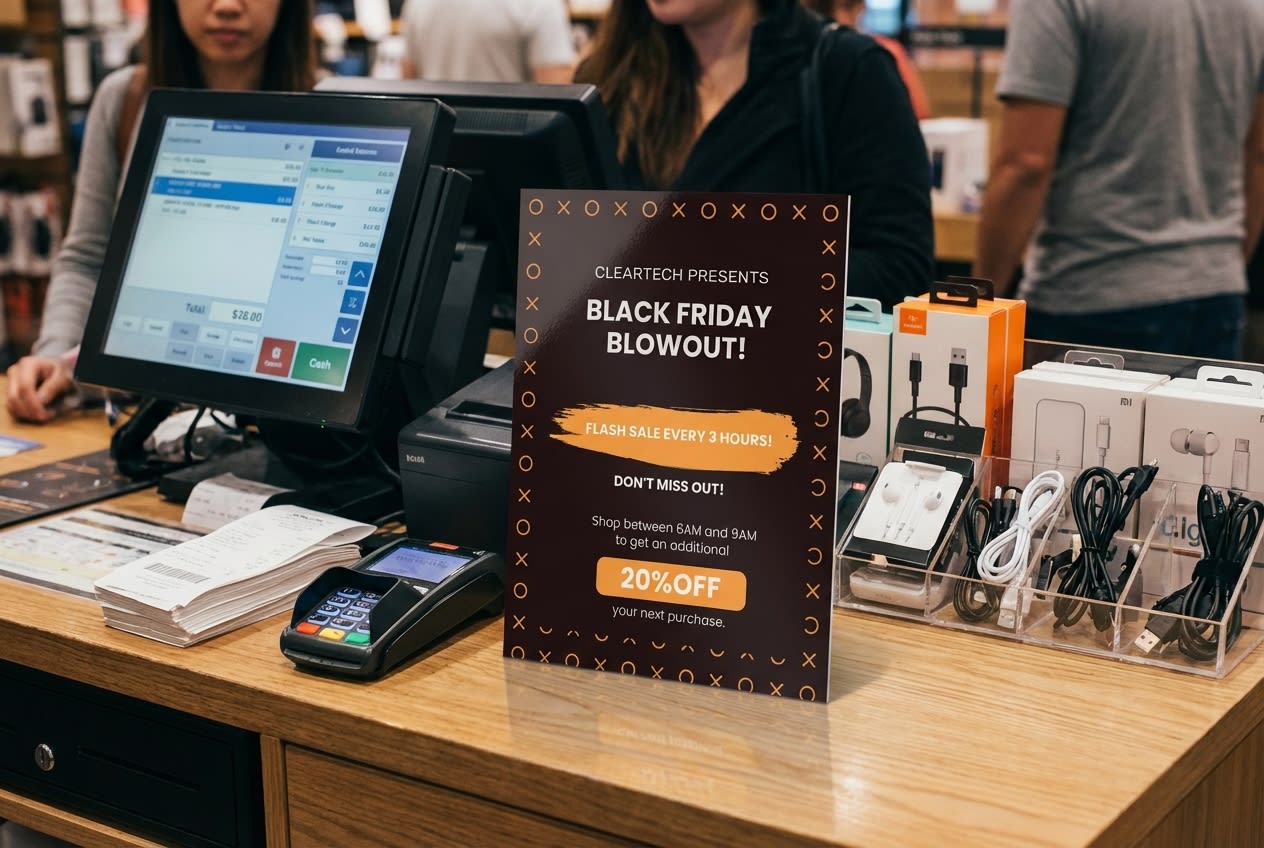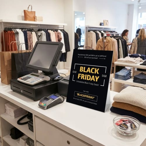 You can choose between two material options for your counter cards: Standard Foam Board or Premium PVC. Foam board is lightweight and ideal for short-term use, while PVC offers greater durability, a professional finish, and added water resistance.