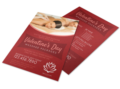 What’s more romantic than a massage? Remind lovebirds about upcoming massage specials just in time for Valentine’s Day with this pretty flyer. Customize with your own images and choose from different fonts and colors for your text. We offer premium printing of your finished flyers or you can print them yourself using your own equipment.