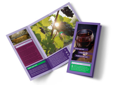 Educate wine connoisseurs on the history of your vineyard with vineyard & winery brochures containing lots of pictures and compelling text of your vineyard. Customizing a bifold or trifold template with our online editor is a breeze; easily upload images and play around with design elements such as the color theme and font type. Get started designing now.