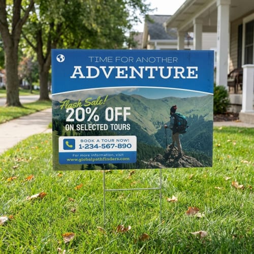 Ideal for real estate professionals, political campaigns, service providers, event organizers, and small businesses, yard signs help you make an impact where it matters-right in your local community. From advertising sales and services to attracting foot traffic or voter support, they’re well-suited for both temporary campaigns and longer-term use cases. Choose from popular sizes like 24" x 18" or go bigger with 36" x 24" options to match your visibility needs.